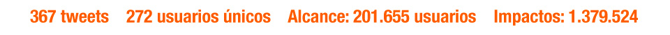 Destacar que la mayoría de tweets se concentraron en las mañanas del día 9 (52 tweets a la 1 del mediodía) y del día 10 (32 tweets a las 10 de la mañana), aunque el hastag continuó activo hasta el día 14 a la mañana, cuando se registro el último tweet.