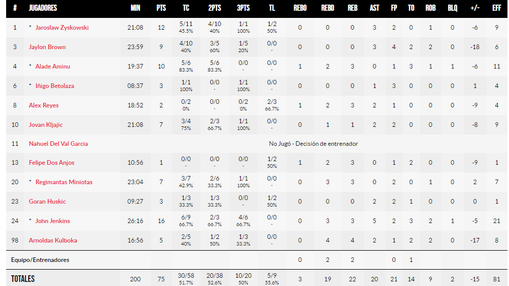 Si bien jugadores como Aminu, Brown o Jenkins ejercieron como líderes en diferentes tramos del choque, hubo otros tantos que continuaron sin rendir como se esperaba. Arnoldas Kulboka fue uno de los ejemplos más claros y es que el francotirador lituano a pesar de estar llamado a ser una de las referencias ofensivas, volvió a jugar por debajo de lo esperado tal y como lleva haciendo la mayor parte de la temporada.