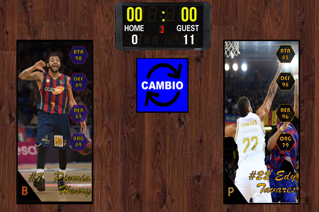 Tras el descanso, el dado marca CAMBIO dando la opción a los entrenadores de recuperar a uno de los jugadores utilizados en la primera mitad. Dusko Ivanovic recupera a su base Pierria Henry mientras que Pablo Laso opta por recuperar a su torre Edy Tavares.
