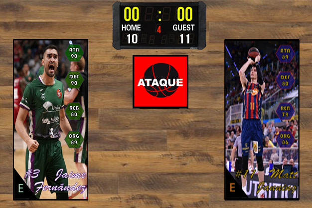 Momento para los cañoneros. Luis Casimiro mete en el parquet a Josh Adams (92 en Ataque) y utiliza la carta de Apoyo ON FIRE (92 + 7 = 99) mientras que Dusko Ivanovic introduce al alero danés Shavon Shields (90 en Ataque). El cuarto se tiñe de verde malagueño con 9 puntos de diferencia (99 – 90 = 9), y Unicaja consigue reducir la desventaja a tan solo 2 puntos al descanso (9 – 11).
