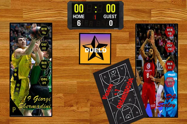 El dado ya está en el aire y no nos podía brindar mejor comienzo de partido que un duelo de estrellas. Iberostar Tenerife sale con su torre georgiana Giorgi Shermadini (368 puntos) mientras que Casademont Zaragoza utiliza a la metralleta DJ Seeley (355 puntos) y utiliza la carta de Apoyo PIZARRA para sumar 7 puntos a la valoración total del jugador (362). El cuarto se lo llevan los hombres de Txus Vidorreta y consiguen sumar los primeros puntos del partido con un + 6 al cierre del primer cuarto (368 – 362 = 6).