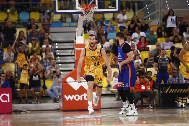 El Herbalife, gracias a su intensidad defensiva, provocaba numerosos errores en el rival, mientras mantenía ventajas cortas a su favor, a pesar de comenzar con un 0 de 7 en triples. Con la mejora en el tiro exterior el Granca logró una ventaja más cómoda (31 a 15). Los taronja se aferraron a Marinkovic, que lideró un parcial de 0 a 11 antes de llegar al descanso y sembrar dudas en el Gran Canaria Arena.