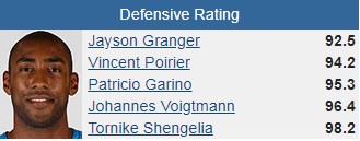 El líder del ratio de eficiencia defensiva es un jugador al que su equipo está echando mucho de menos y del que otros números no valoran su importancia en pista. Jayson Granger es el jugador que provoca que menos puntos reciba su equipo por cada 100 posesiones. Claro está que también hay que valorar que los cinco primeros de esa lista son todos jugadores de Kirolbet Baskonia y que el pívot más impactante en el apartado defensivo es Vincent Poirier, lo que le lleva también a ser el segundo en la diferencia de ratios.