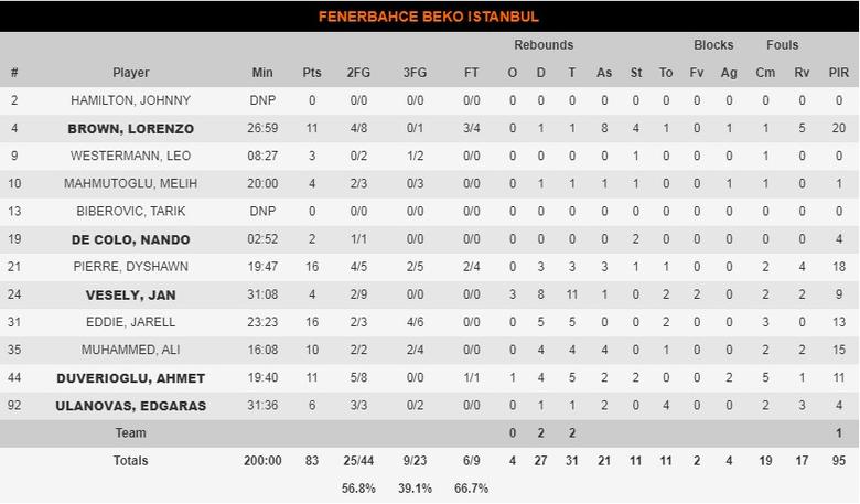 Los de Kokoskov se han recuperado de la mala racha que tuvieron con tres derrotas seguidas y suman ya dos buenas victorias consecutivas. Los turcos dominaron todo el partido, ganando los cuatro cuartos, pero siempre con ventajas cortas que mantenían a Khimki con opciones a la remontada. Llegaron a ponerse a dos a falta de 3:32 pero tras una canasta de Ulanovas, Jarell Eddie finiquitó el partido con dos triples seguidos para poner del 80 a 70. El ex de UCAM Murcia realizó otro gran partido con 16 puntos y 5 rebotes, destacando como siempre en su especialidad con 4 de 6 en tiros de tres. Hasta cuatro compañeros más sumaron en dobles dígitos en valoración, liderados por Lorenzo Brown (20) y con Dyshawn Pierre (18), Ali Muhammed (15) y Ahmet Duverioglu (11). Vesely también aportó en la zona con 11 rebotes y ese trabajo coral provocó que no se notase la ausencia de Nando De Colo, que solo pudo jugar 2:52 minutos por lesión.