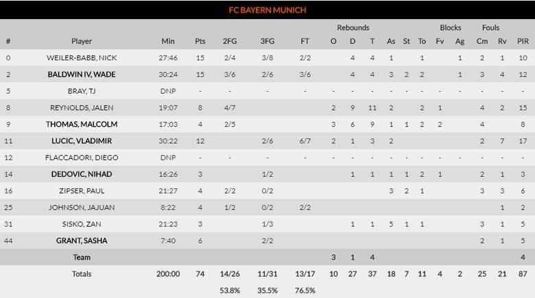 FC BAYERN MUNICH 74-59 CRVENA ZVEZDA BELGRADE
