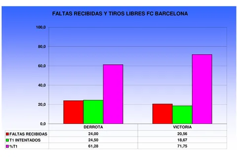 - Faltas recibidas: cuando FC Barcelona pierde, recibe más faltas (21.8 frente a 19.5)
