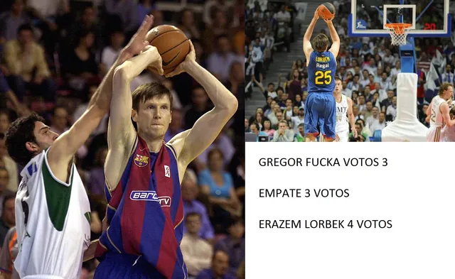 La votación más igualada. Gana el virtuoso esloveno por un solo voto y habiendo tres redactores que han votado empate. Dos jugadores que fueron los mejores cuatros de Europa en su momento, muy altos pero con un gran tiro de tres y mucho talento.