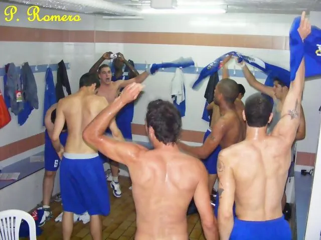 El siguiente paso de la fiesta tuvo lugar en el vestuario, y como no podía ser de otro modo, allí nos colamos en exclusiva tomando numerosas fotografías (Ver galería). Christian Bart se convertía en periodista improvisado y no perdía detalle de la fiesta inmortalizando cada segundo con su cámara a la vez que sus compañeros comenzaban la ducha con botellas de agua y bailaban agitando sus camisetas. ¿El cántico más repetido? –“Alcohol, alcohol, alcohol, hemos venido a emborracharnos, el resultado nos da igual…”-. Una fiesta que prosiguió con la comida de la plantilla y el posterior viaje de regreso a Huelva.