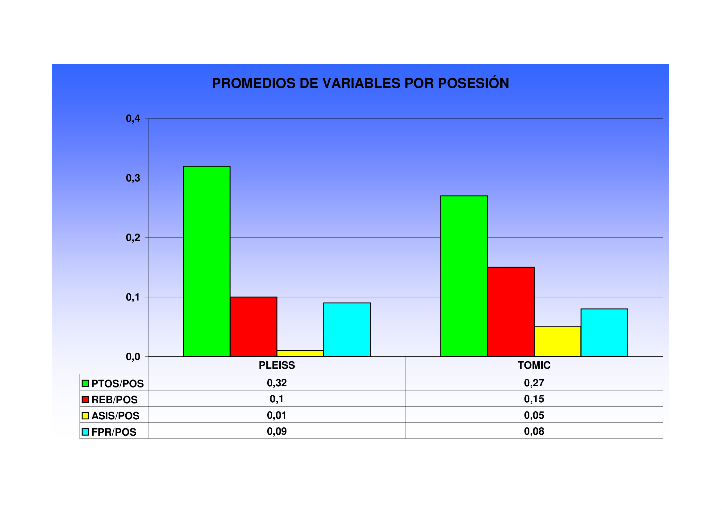 Una vez que se ha comprobado que los jugadores juegan el mismo promedio de posesiones por partido y que además finalizan el mismo promedio de posesiones (con éxito o no), el objetivo se centra en comparar el rendimiento de ambos pivots en referencia a variables (fundamentalmente de ataque) relevantes para un pivot, como pudieran ser (entre otras):