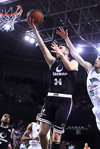 Gescrap Bizkaia fue a remolque en el marcador durante prácticamente los 40 minutos. Unicaja salió más centrado a la cancha endosando un parcial de 6-13 a un equipo local muy frío y poco tenso en defensa (min.6). Con Raül López en pista llegaría el despertar de los locales, que, con una canasta de Marko Banic, igualaban la contienda en los primeros instantes del segundo periodo (25-25, min. 12). Sin embargo, la remontada no se consumaba y los de Katsikaris iban haciendo la goma ante un equipo malagueño sólido y serio. Con el público encendido por lo que entedía exceso de celo arbitral, que dejaba como víctima a Alex Mumbrú (cuatro faltas en la primera mitad, incluyendo una técnica), Unicaja se iba al descanso con una renta de 3 puntos (33-36), que hubiera sido mayo si no llega a aparecer Kostas Vasileiadis para anotar un 2+1 en el último minuto de acción de los primeros veinte minutos.