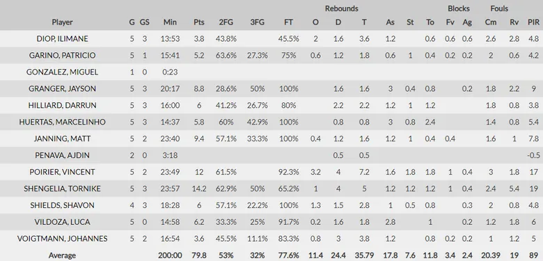 Durante estos 3 partidos el porcentaje de tres fue del 30% y en ninguno de los casos los exteriores (Shields, Hilliard, Garino y Janning) superaron los 25 puntos en conjunto, teniendo que tomar los bases responsabilidad en el juego exterior. Hasta ahora, la más clara diferencia vista en cancha es a la hora de rotar el juego interior.