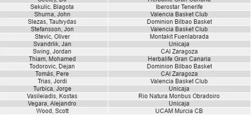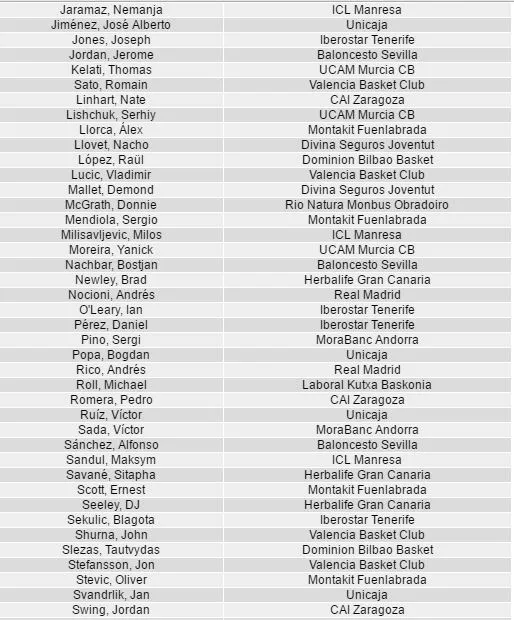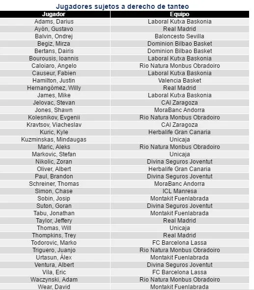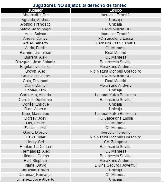 Finalizado el plazo para la presentación de ofertas cualificadas, la ACB anuncia la lista de jugadores cuya contratación está sujeta al derecho de tanteo por parte del club de origen y la de aquellos no sujetos al tanteo.