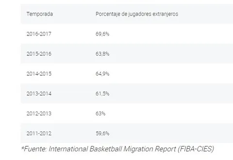 Otro dato que llama la atención es que en los mejores quintetos de la liga ACB de los últimos tres años solo hay tres jugadores españoles: Sergio Llull, el Chacho Rodríguez y Álex Mumbrú. Es decir, que no solo cada vez hay menos españoles, sino que los extranjeros que vienen son las estrellas de sus equipos. En la temporada 2017-2018, el mejor quinteto no incluye a ningún jugador español.