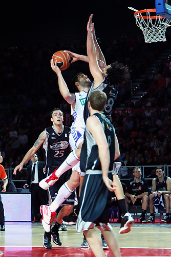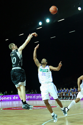 Sin embargo, desde el inicio hemos podido comprobar que la actitud de los de Txus Vidorreta era la idónea para afrontar el choque ante uno de los grandes de Europa. Gran labor colectiva de los hombres de negro, en la que destacaba la brega de Guardia (12 puntos y 4 rebotes), el dinamismo de Seibutis (10 puntos, 6 rebotes y 3 asistencias) y el acierto en el tiro exterior (8 de 15 en triples en los primeros 2 cuartos). Incluso se dominaba de manera, sorprendentemente, en el rebote. El meritoria esfuerzo realizado les hacía llegar al descanso con 40-37.