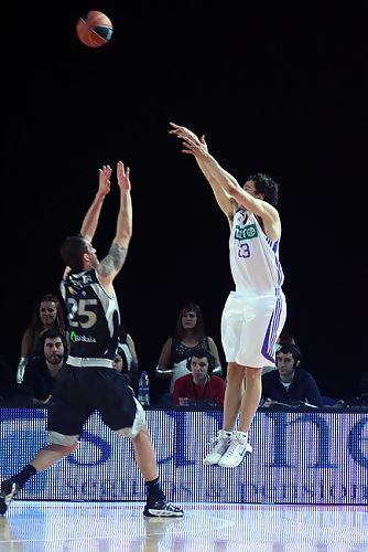 Muchos pensaban que en el último periodo iba a llegar el bajonazo de iurbentia Bilbao Basket y que los de Vidorreta sucumbirían ante el ataque final del Real Madrid, equipo acostumbrado a ganar los partidos viniendo desde atrás. Y tal vez hubiera ocurrido si no llega a emerger la figura de Markota. Las faltas de Banic y Pasalic han obligado a Vidorreta a jugársela con el hasta entonces casi inédito ala-pívot croata. Markota ha aprovechado perfectamente la oportunidad; 2 triples suyos, un impresionante 2 + 1 (poderoso mate ante la oposición de Hervelle) y 1 tapón a Reyes han sido clave para que los de casa lograran una muy meritoria victoria ante el Real Madrid. Bilbao Basket, gracias al efecto Markota, ha llegado a los instantes finales con una renta que ha alcanzado los 10 puntos; Bullock (21 puntos casi sin despeinarse) ha intentado acercar a los suyos, pero el acierto en los tiros libres de los de Vidorreta y la tranquilidad aportada por Salgado (8 puntos y 6 asistencias) han hecho estéril cualquier intento de remontada.