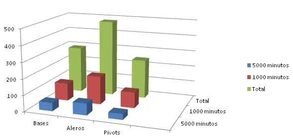 Como ya comentamos en el primer capítulo, aproximadamente 1000 jugadores españoles han debutado en la historia de la ACB. Lo que deseamos desarrollar este punto es la distribución de estos jugadores por puestos de juego. Es verdad que la tendencia del baloncesto moderno ha cambiado con el paso de los años y los jugadores son cada vez más polivalentes. Pero para poder simplificar la tarea, hemos incluido las tres posiciones básicas, siendo estos los bases, aleros (o exteriores) y pívots (o interiores). La variable que hemos tenido es el número aproximados de jugadores totales por cada posición, teniendo en cuenta los que han disfrutado de 1000 minutos de juego y los que han llegado a 5000 minutos.