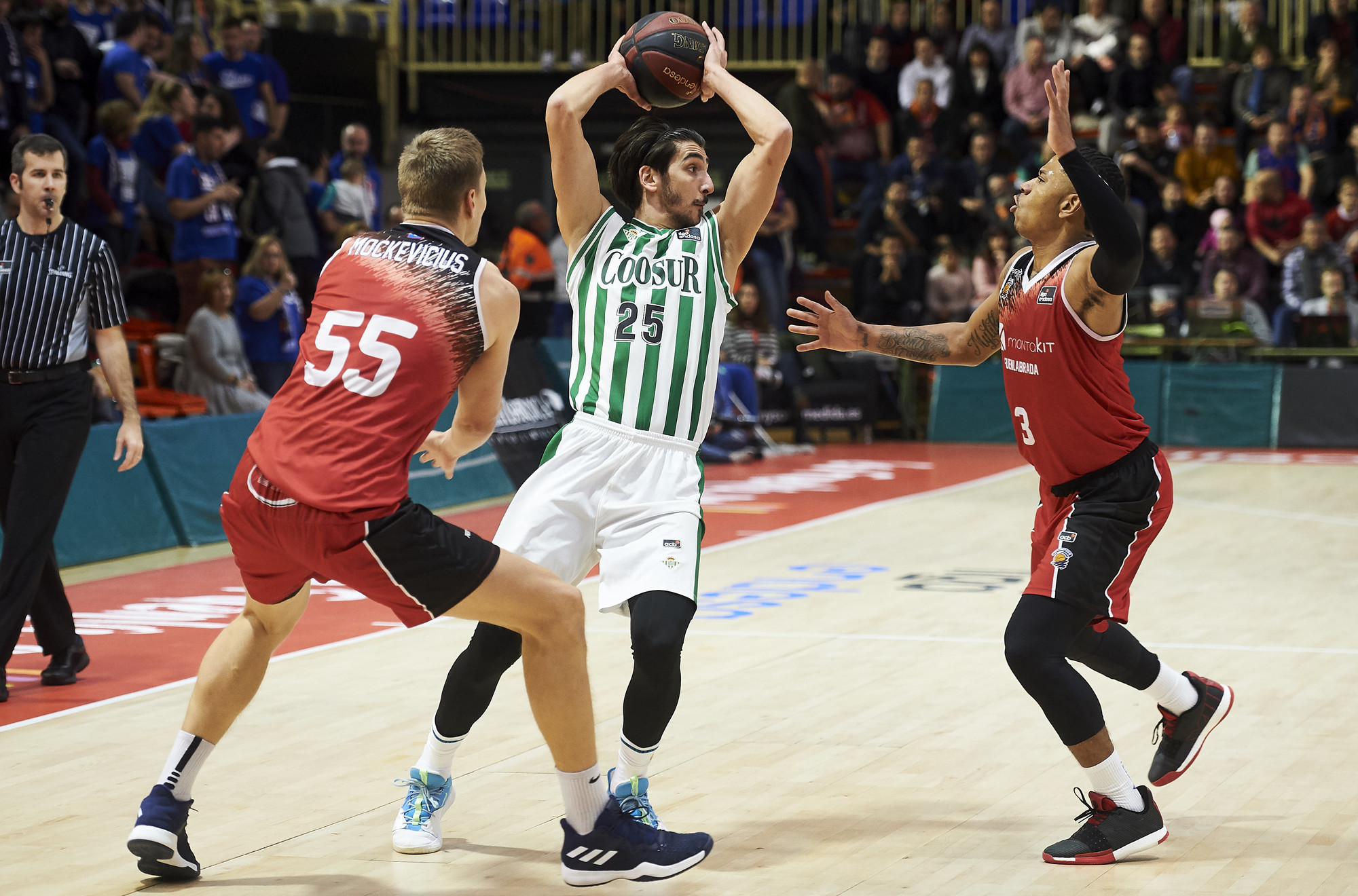 Entraba al duelo más dramático de lo que va de temporada con mayor tensión el conjunto local, que imprimía velocidad a sus ataques en las piernas de Tomás Bellas y que encontró apoyos en las alas de Anderson y Brown, pero no acierto ante un Betis que se mantuvo en todo el momento enganchado en el electrónico desde su acierto exterior, frente a una defensa, la local, que se perdía en cuanto había algún intercambio ayuda, dejando mucho tiros liberados en el lado débil. Ese síntoma lo supieron leer primero Sipahi, sobre el parqué y luego Segura, que quiso hacer daño con la entrada de Almazán en el ‘3’ cuando Cuspinera sentó a Brown y comenzó a dominar tanto los cristales como la pintura a través del trabajo tanto del alero como de el recién llegado Jordan. Con esos ingredientes abrió brecha el conjunto de Segura yéndose a un parcial de 4-13 en la segunda mitad de cuarto.