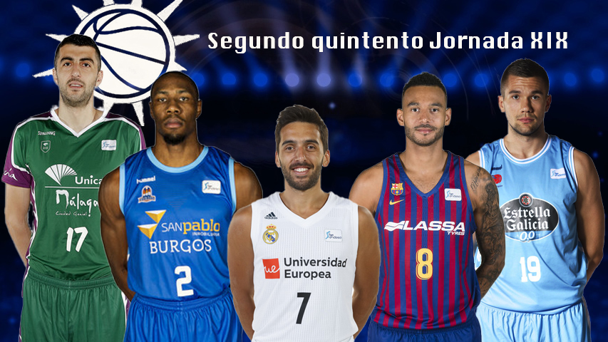 Vamos con los mejores jugadores de la jornada 19, destacando a algunos de los participantes del vibrante duele entre Unciaja Málaga y Real Madrid, dupla baskonista, jugones argentinos, músculo maño, debutantes y mucho más. El Mejor Quinteto Solobasket de la Jornada XIX queda integrado por: