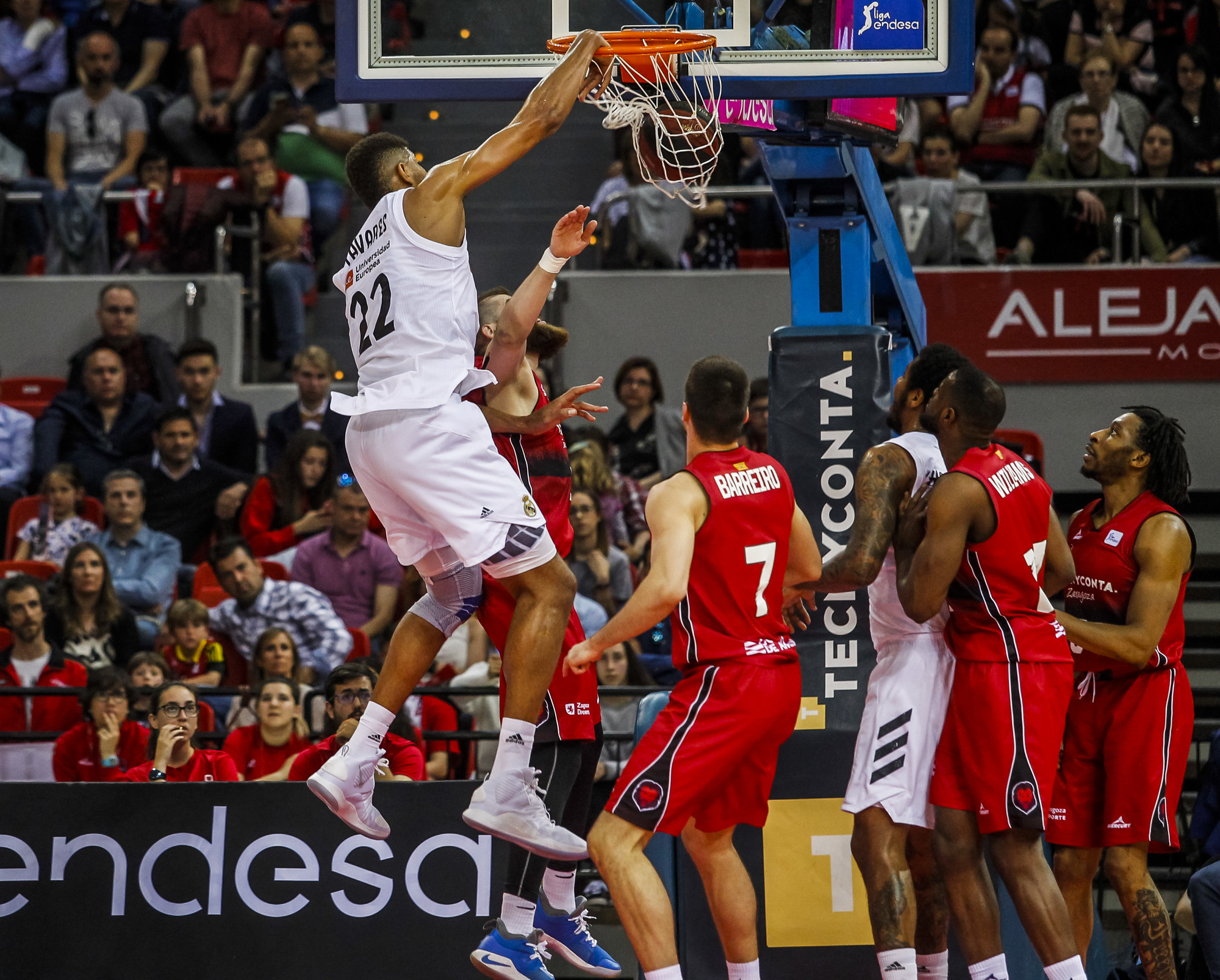 Un “monstruo” fue a ver a los maños el sábado y no hizo prisioneros. El interior caboverdiano del Real Madrid causo terror en la pintura rozando el triple doble con una actuación animal. Un cerrojo infranqueable capaz de frenar a cualquier insensato de Tecnyconta Zaragoza que osara entrar en la zona.