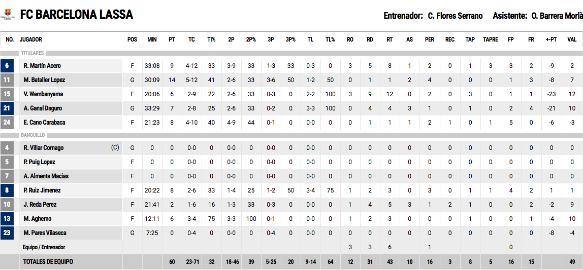 Capturando 17 rebotes más que su equipo (43-60 ) fueron capaces de conseguir una mayor fluidez en su juego en los momentos más calientes. Los dos jugadores extranjeros junto con Nestor Herrera (8), sumarón 38 rebotes, casi más que el total del FC Barcelona (43)