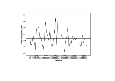 - Puntos anotados por posesión: Antes de la final de copa, su promedio era de 0.2536 ptos/posesión, habiendo disminuido ese promedio tras la final de copa a 0.1805 ptos/posesión