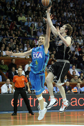 Los jugadores locales, especialmente Marcelinho Huertas y Lucas Recker, han salido especialmente nerviosos a la cancha. Esta circunstancia ha sido bien aprovechada por el conjunto de Xavi Pascual, que, de la mano de un extraordinario Pepe Sánchez en la dirección, ha puesto muy pronto tierra de por medio (2-12 a los 5 minutos de partido). Visto lo que ocurría en la pista, Vidorreta ha decidido darle la dirección del equipo a Javi Salgado, jugador que ha sido básico para que Bilbao Basket asentase su juego y se sacudiese la presión. El buen juego del base de santutxu, que ha logrado en este primer periodo anotar los 7 puntos que ha totalizado en el partido de hoy, ha posibilitado que los suyos llegasen al final del primer cuarto a tan solo 2 puntos del equipo catalán (16-18).
