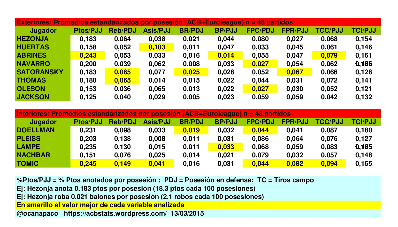 - Otro aspecto llamativo es el hecho de que Navarro sea de entre el grupo de exteriores, con diferencia, el exterior que más tiros de campo intenta por posesión (18.6 tiros cada 100 posesiones).