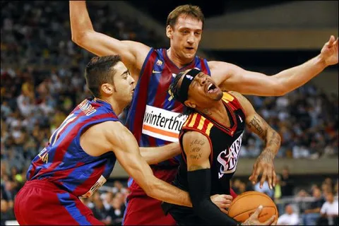 Durante las temporadas 05/06 y 06/07 el FC Barcelona lució el color rojo en sus pantalones de juego. Con esta combinación venció 104-99 a los Sixers de Philadelphia de Allen Iverson y Chris Webber,el 5 de octubre de 2006 en el Palau Sant Jordi.