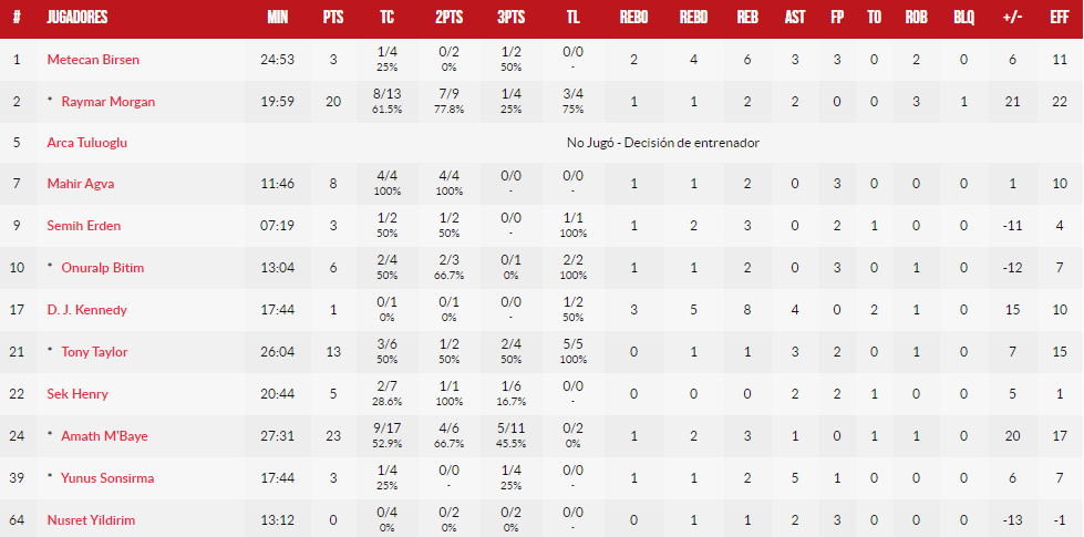 El conjunto vizcaíno volvió a ofrecer una versión pobre de su juego donde escaseó la defensa y los sistemas ofensivos brillaron por su ausencia. Clara muestra de ello fue la incapacidad a la hora de defender y es que los turcos superaron la defensa de los MIB prácticamente sin esfuerzo. Además, si la defensa fue nula, el ataque tuvo tintes similares ya que los únicos recursos empleados en tareas anotadoras fueron el excesivo uso del pick & roll y la técnica comunmente conocida como “hacer la guerra por su cuenta”.