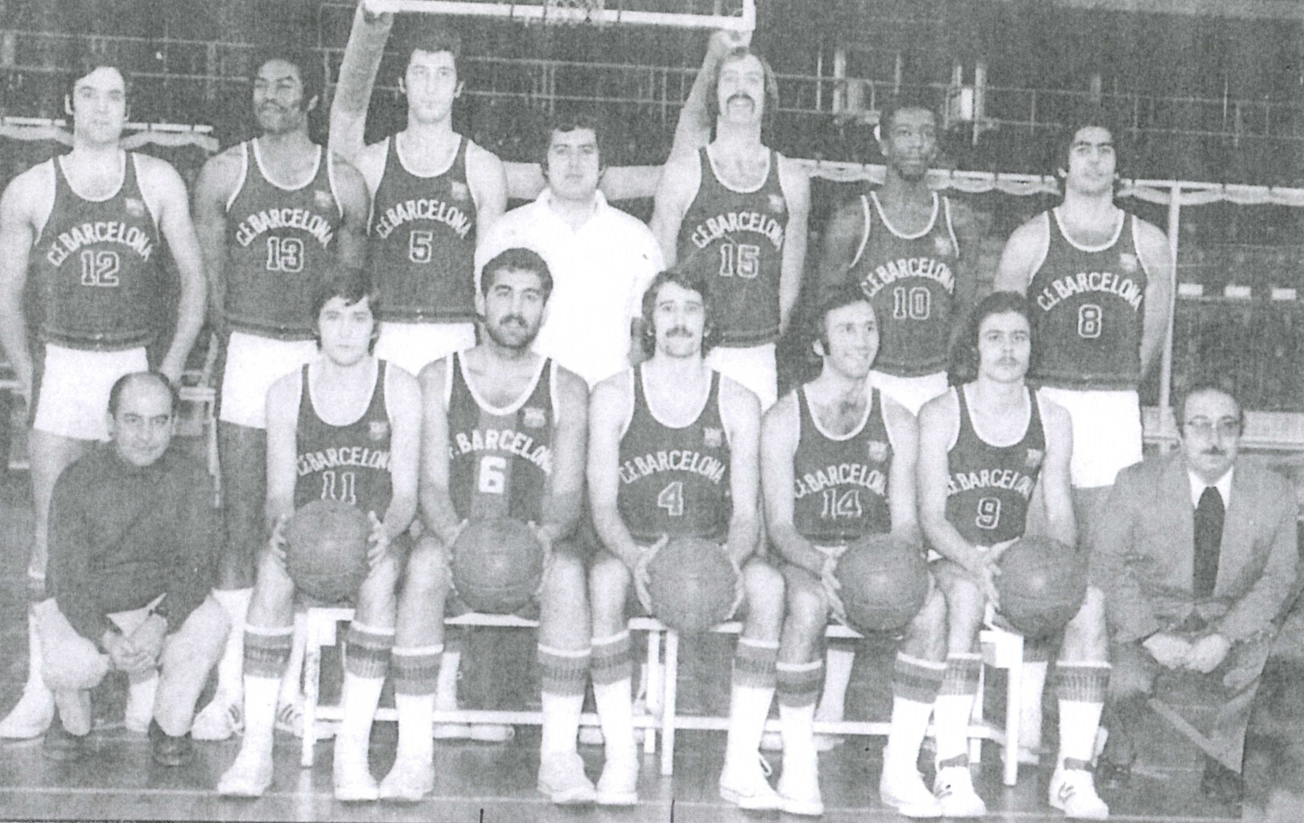 Finalmente, apuntar que el F.C. Barcelona también comunicó el 8 de mayo el fallecimiento de Vicente San Juan, exjugador de la época de los años 60 e integrante de aquel Barça que volvió a la máxima división después de que el presidente blaugrana Llaudet se ‘cargase’ la sección de baloncesto en el 61. También fue primer entrenador en la ciudad condal en la 73-74 donde pudo entrenar al segundo gran ‘matador’ de la historia de nuestro baloncesto, Charles Thomas (en la foto de la derecha con el nº13). La siguiente temporada, también en máxima división, entrenaría al CD Mataró Ignis del mítico Alfonso Martínez.