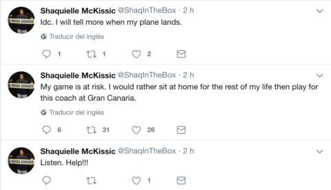 El jugador del Herbalife Gran Canaria, Shaquielle McKissic, sorprendió a los navegantes de Twitter hace apenas cuatro horas con esta serie de mensajes