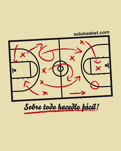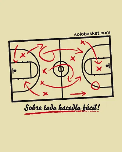 Se comentó la idea de una camiseta con la explicación de una última jugada, llena de líneas, cruces, puntos, movimientos para realizar en escasos minutos, variantes…. y se me ocurrió que como colofón a todo el meollo explicado por el supuesto entrenador dijera, VALE CHICOS, PERO SOBRE TODO HACEDLO FACIL, así lo expuse en la lista y se quedó en el lema SOBRE TODO HACEDLO FACIL.