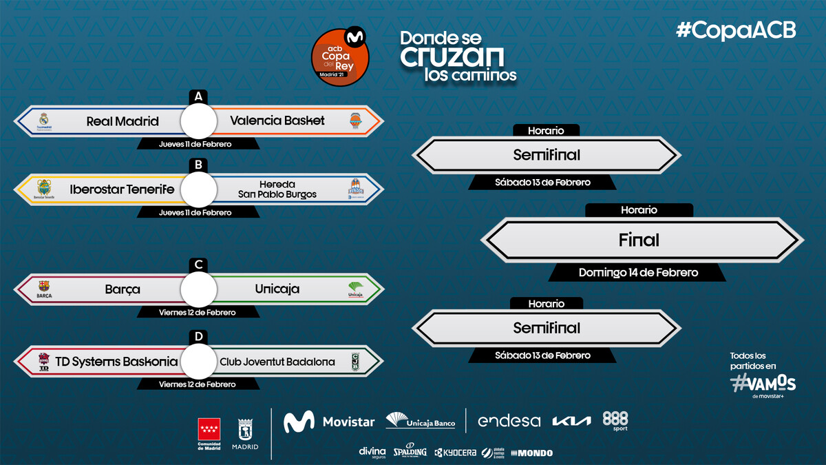 La Copa del Rey 2021 ya tiene emparejamientos tras el sorteo celebrado esta mañana en el WiZink center de Madrid, que acogerá la sede de una Copa sin público, pero con mucho nivel deportivo en una temporada atípica.
