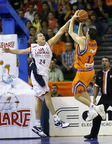 - Víctor Claver está jugando a un buen nivel. Sin llegar a explotar en la faceta anotadora, está asumiendo por momentos el liderazgo del equipo sobre la cancha, pidiendo balones que queman y aportando en el rebote, la intimidación y la defensa en general, donde su polivalencia le permitió hacerse cargo de jugadores tan dispares como Oleson, San Emeterio o Teletovic en el partido ante el Caja Laboral.