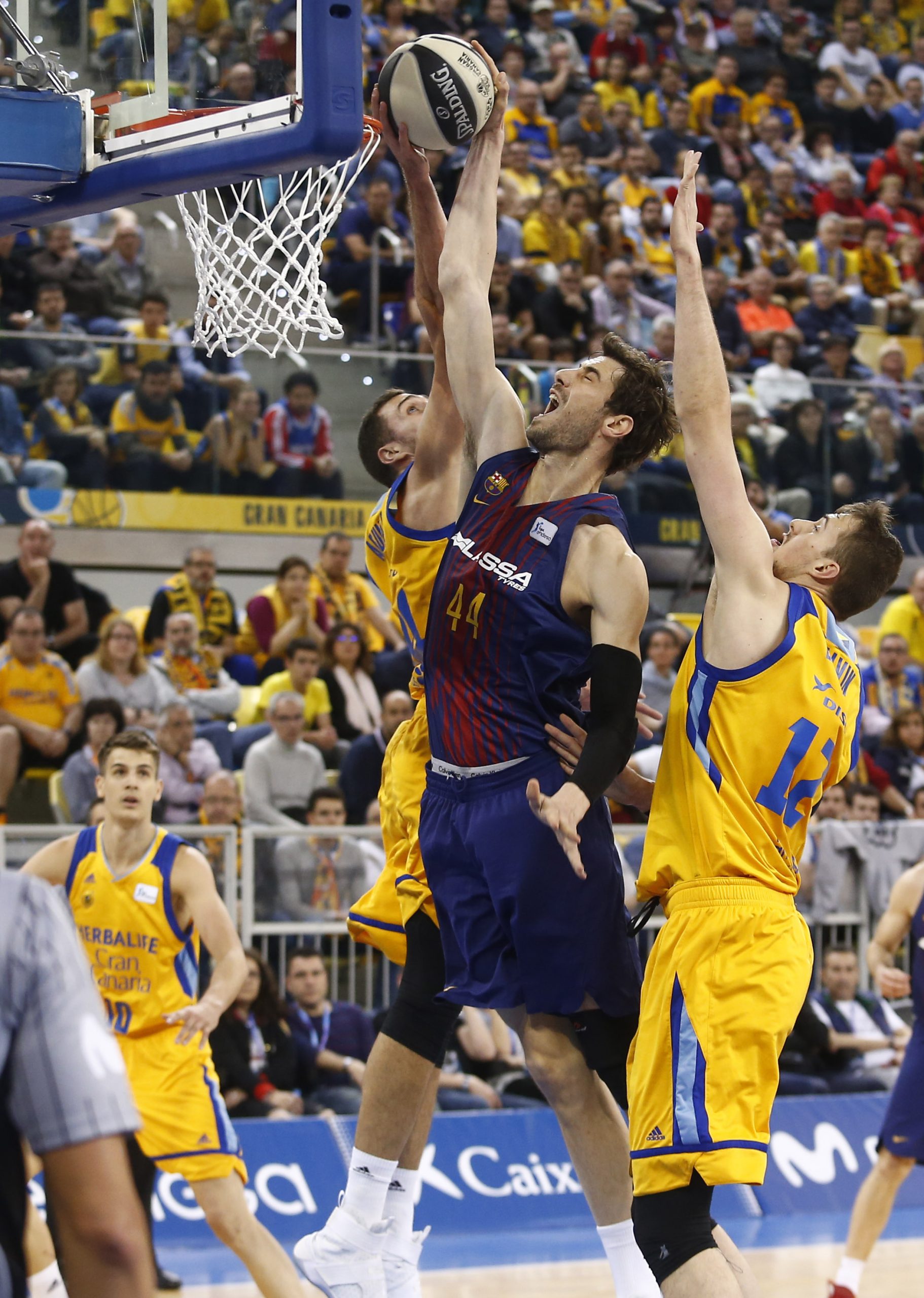 Las sensaciones del Herbalife estaban siendo peores de lo que demostraba el resultado, hasta que dos triples seguidos de Ribas pusieron la máxima (19 a 28), después de la séptima pérdida de los anfitriones. De repente, la táctica del Granca fue buscar a Pasecniks, y el letón respondió, una y otra vez. En el ataque blaugrana no destacaba nadie, pero iban apareciendo casi todos. Todos compartiendo el balón, cargando el rebote ofensivo y cerrando líneas de pase. Con este panorama aparece Eriksson, con cinco triples seguidos y pone patas arriba al Gran Canaria Arena (39 a 37). El Barça cometiendo todos los errores que no había hecho hasta ahora, sobre todo pérdidas de balón ante una gran presión defensiva del rival y encomendándose a Heurtel para minimizar el descalabro (43 a 41).