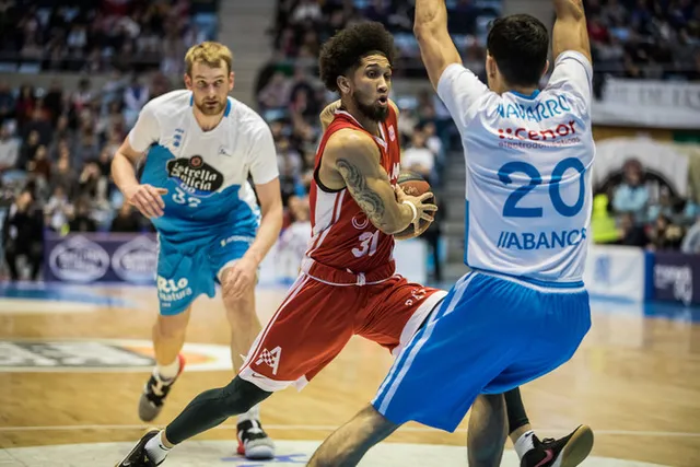 El partido comenzó frío como el clima y se tardaron casi dos minutos en verse la primera canasta por medio de Ovie Soko. Los locales despertaron y lograron tres triples consecutivos, dos de Sàbat y uno de Vasileiadis, pero UCAM Murcia respondió por medio de un incisivo Doyle y de Soko. Un inspiradísimo Sàbat empataba a doce con su tercer triple en cinco minutos. El nivel de contacto físico permitido por los árbitros era alto y eso calentaba al público del Fontes do Sar, al que no calmaba ni el hecho de que los murcianos entraran en bonus. Monbus Obradoiro llevaba la iniciativa gracias a los tiros libres de Vasileiadis pero Rojas empataba a veinte con un triple lateral. El alero griego respondía en la siguiente jugada para dejar el marcador en 23 a 20 al final de este período. Entre los dos conjuntos habían anotado 9 de 15 triples intentados.
