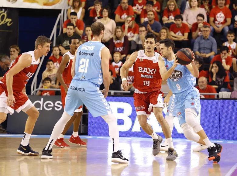 Los nervios atenazaron a ambos equipos en el inicio de partido, especialmente a un BAXI Manresa que cuenta con muchas más victorias de las que esperaba en un principio, y que vislumbra la posibilidad de clasificarse para la Copa del Rey. El Breogán, fiel a su estilo, tomó sus primeras ventajas con tiros exteriores. Triples de Cvetkovic, Vidal y Brown pusieron el 8-12 para los visitantes tras 6 minutos de juego. Los locales anotaban desde más cerca, con Renfroe repartiendo juego para Doellman y Lallane, pero sin conseguir superar a la escuadra de Natxo Lezkano, que dominaba 12-15 tras el primer cuarto.
