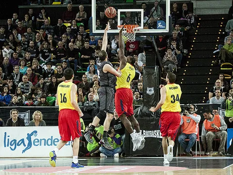 Regresó a los MIB su seña de identidad: la defensa. En un arranque de partido intenso atrás por parte de ambos equipos, Bilbao Basket vivió de su defensa y de un Dairis Bertans omnipresente. El letón parecía el único en ser capaz de encontrar el camino al aro ante un Barça que llevaba la delantera, pero sin romper el choque (13-18, min. 10). Bilbao Basket no bajó los brazos, una segunda unidad contagiada por la efervescencia de Roger Grimau siguió apretando ante un rival desdibujado, en el que Ante Tomic perdía los papeles. Un triple de Alex Mumbrú incluso ponía por delante a los de casa en el ecuador del segundo periodo (30-28, min. 16). Papanikolaou y Navarro saldrían al rescate para permitir al Barcelona llegar al descanso con una ligera ventaja (33-35, min. 20).