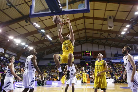 El ambiente ensordecedor en el CID abría el partido con los dos equipos algo desacertados en el lanzamiento. La intensidad defensiva de ambos era notable, no querían dejar ni un respiro a sus rivales. Los blancos comandaban el marcador durante los primeros compases del encuentro a base de distancias cortas. Fueron Javier Beirán y Newley los que le dieron la primera ventaja al cuadro de Pedro Martínez, que se venía arriba empujado por su público y por una enorme defensa que provocó que Pablo Laso tuviera que parar el partido (12-7). Los amarillos seguían mostrándose fuertes en defensa, poniendo a Bourousis en muchos aprietos, en cambio, era Mirotic el que respondía desde el perímetro para darle un respiro a los suyos. Aún así, los grancanarios no bajaban su intensidad para mantener las distancias en el marcador. Otra vez Mirotic conseguiría reducir distancias para los madrileños con un dos más uno espectacular, que daría por terminado estos primeros diez minutos a cinco puntos en el marcador (22-17).