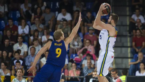 El partido comenzó con una serie de imprecisiones por ambos lados que significaron sólo 2 puntos anotados por cada equipo en los primeros 3 minutos de juego. Con un marcador bajo y ambos conjuntos dominando el rebote defensivo, las segundas oportunidades fueron inexistentes. Cuando los blaugranas empezaron a despertarse con un doble de Tomic acompañado de un triple de Singleton, los de Andorra respondieron con sendos triples de Rafa Luz y Dylan Ennis para poner el 9-11 a falta de 3 minutos para el final del primer período.Tras algunas imprecisiones defensivas de ambos conjuntos, el primer período llegó a su fin con un marcador de 13-17 tras un triple lejano de Rafa Luz.