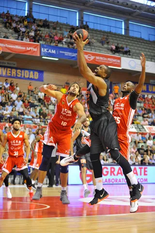Pero el verdadero protagonista de la primera mitad sería Will Thomas. Variedad de recursos desde el poste bajo o como cuatro abierto. 6 rebotes y 11 puntos en serie que evitaron la reacción pimentonera. Urtasun y Oleson comandaron las acciones ofensivas en el comienzo del segundo periodo, no fue suficiente. El choque había crecido en intensidad gracias a la permisividad arbitral; la lucha en la pintura era cada vez más feroz. Esa batalla parecía perjudicar al cuadro local, que a pesar de los esfuerzos de Ovie Soko no alcanzaba la fluidez necesaria en pista contraria. El acierto desde el 6.75 de Sastre y Van Rossom mandaba el partido a la lona justo antes del tiempo de descanso (31-42).