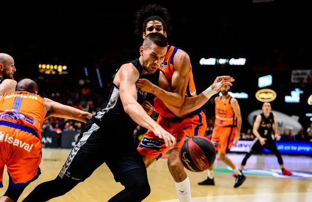 RETAbet Bilbao Basket comenzó lanzado, como si quisiera recordarle a Valencia Basket que los de Mumbrú han ganado a todos los Euroligas en la primera vuelta, incluidos los de Ponsarnau. El protagonismo absoluto lo cogió Sulejmanovic, que realizó los cuatro primeros tiros de su equipo anotando los siete primeros puntos. Pero este Valencia no es el mismo que se encontraron en la primera vuelta y entre Dubljevic y Labeyrie respondieron. Balvin también estaba con ganas en el duelo con el montenegrino, pero La Roca ganaba la partida sumando 8 puntos de los primeros 11 de los taronja, con dos triples. Los primeros cinco minutos el acierto de los equipos era muy alto, acabando en canasta casi todos los ataques, pero a partir de ahí comenzaron a endurecerse las defensas y ya costaba más anotar en ambas zonas. Bouteille aparecía para conseguir sus cinco pimeros puntos y también Rafa Martínez volvía a anotar un triple en esos aros que conoce tan bien. El primer cuarto acaba tan igualado como había sido todo el tiempo, con Ndour poniendo el 20 a 19 desde el tiro libre.