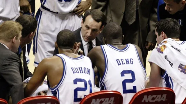Tras comprometerse con Duke, la temporada 2003-2004 fue muy importante para Deng. Pudo medirse con los mejores jugadores del país y disputó 37 encuentros durante el año, promediando 15 puntos y algo más de 30 minutos en cancha. Los Blue Devils alcanzaron la Final Four del torneo NCAA y Deng se convirtió en el 10º jugador en la historia de la competición en liderar las categorías de puntos, rebotes y porcentaje de acierto entre los rookies de su conferencia.