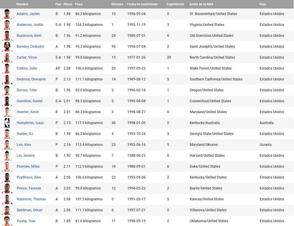 La noche del draft trajo consigo a tres nuevas incorporaciones: Trae Young, Omari Spellamn y Kevin Huerter. Especialmente los focos van a apuntar al primero de ellos. Trae Young será el líder del nuevo proyecto de los Hawks, y necesitan con ellos a jugadores curtidos en la liga. El mentor será Vince Carter. “Vinsanity” llega de los Sacramento Kings ante la que puede ser su última temporada como profesional, dispuesto a darles las pautas necesarias a los más jovenes para llegar lejos en la mejor liga del mundo. Combinando el puesto de base, llegó Jeremy Lin, después de sufrir una grave lesión que le impidió disputar la pasada campaña en su totalidad. Con ambición llega de Phoenix Alex Len, talento bajo los aros que busca el lugar idóneo para explotar sus recursos. Buscando su sitio en la NBA llega procedente de China Thomas Robinson, el cual no encontró suerte en ninguna pintura de la liga.