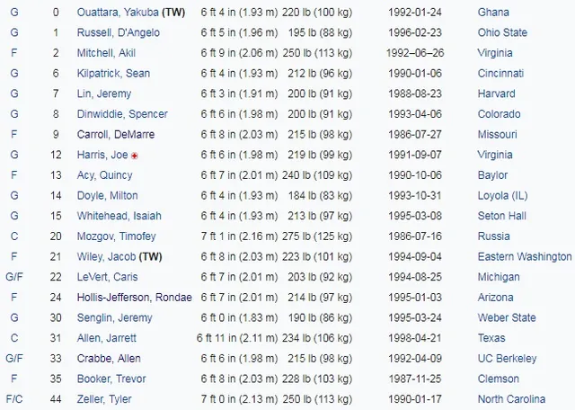 - D'Angelo Russell. La elección de Lonzo forzó su salida y los Nets apostaron por él. Es, por unanimidad, el líder de los Nets y tendrá 82 oportunidades de mostrar su telanto y el hielo que corre por sus venas. Un anotador sin limitaciones pero un general en la pista por confirmar, es momento de que D'Angelo demuestre a Magic el error que cometieron los Lakers dejándole salir de Los Ángeles.
