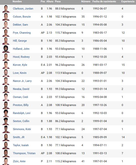 La temporada pasada fue una temporada complicada en Cleveland. Con dependencia absoluta de LeBron James, muchos jugadores no supieron rendir al nivel al que acostumbran tener y, unido a los traspasos antes y durante la temporada, fue un año turbulento. Aún así, tras exprimir a James 36 minutos cada partido consiguieron acabar cuartos en la Conferencia Este, y llegar hasta las Finales para caer en 4 partidos, barridos por los Golden State Warriors. Kevin Love, acuciado por sus problemas de ansiedad, no llegó a completar 60 partidos y, aún así, dejó un promedio de 18 puntos y 9 rebotes por noche, números nada malos por un jugador que lleva mucho tiempo infravalorado por la sombra que le acompañaba.