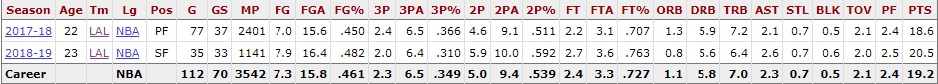 Kyle Kuzma es el mejor jugador, tras LeBron James, en estadísticas por cada 36 minutos. Ya no ha aumentado su producción ofensiva con respecto al pasado año, como se muestra en la imagen, sino que actualmente es el tercer máximo productor por cada 36 minutos en ataque, tras LeBron y Michael Beasley, éste último jugando muchos menos minutos que Kuzma.