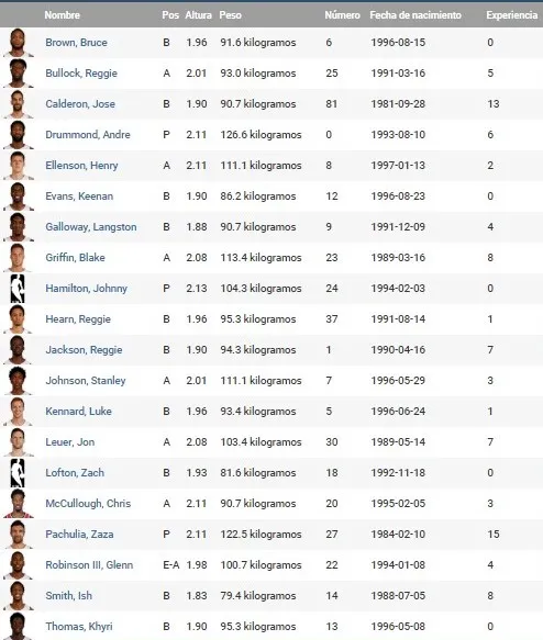 Top 3 salarios: Blake Griffin (31,8 millones y extensión hasta la 2021/22 con un aumento que se va hasta los 38,9 millones), Andre Drummond (25,4 millones y dos años más de contrato – el último con player option – y Reggie Jackson (17 milllones y contrato por un año más por 18 millones).
