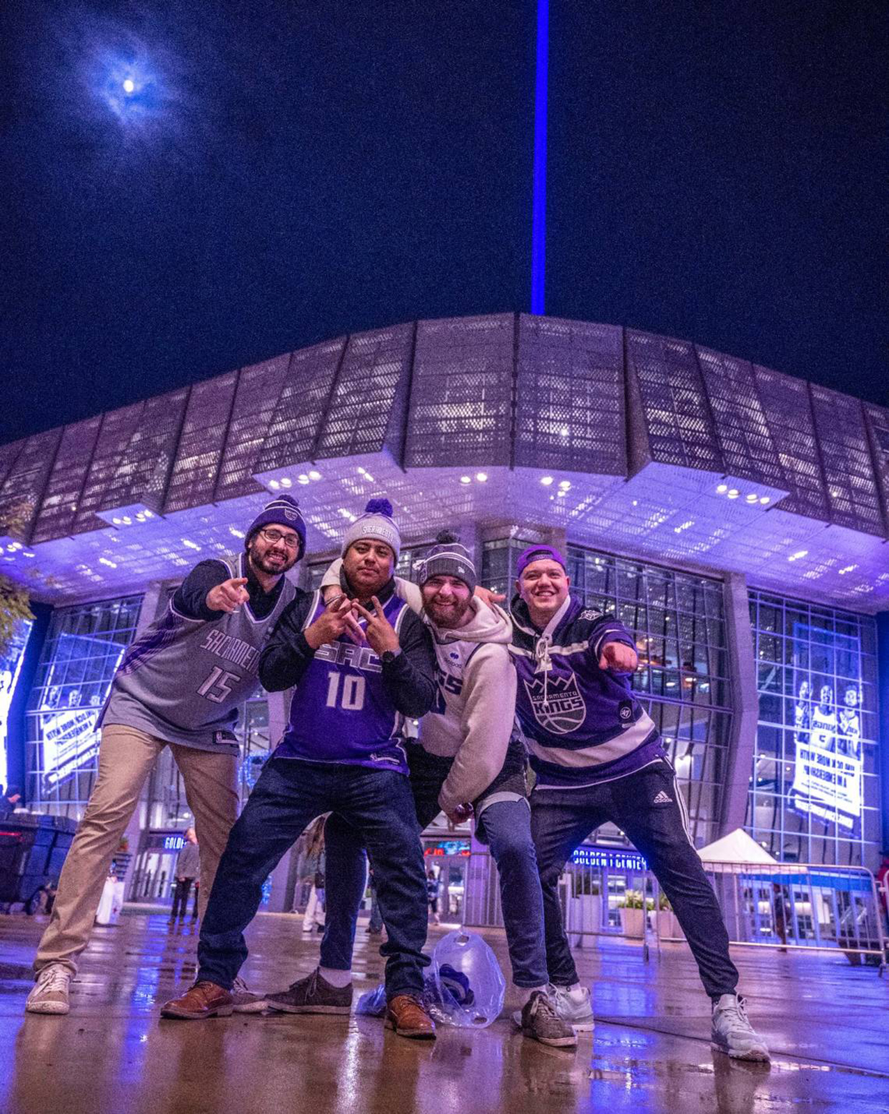 Y Rinehart pensó lo mismo para los Kings, comenzando con ideas de encender el Capitolio, la Tower Bridge, decidiéndose por el pabellón, el hogar del equipo. Así, las luces lilas ya son parte de la historia de la franquicia, encendiendo esa luz hacia el cielo, apretando el botón en casa alguna celebridad, siendo uno de los que más se han involucrado 50 Cent.