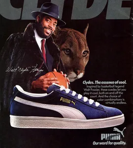 Frazier, además de promocionar su estilo de ropa -siempre dijo que no era caro y que otros pagaban mucho más por los trajes- también fue el primero en introducir la moda en las zapatillas deportivas. Primero en sus Converse personalizadas con franjas naranja y azules (referencia a los Knicks) y luego con el modelo Clyde que sacó Puma en su honor. “Nadia había hecho aquello hasta la fecha”, diría Frazier. Tal afirmación no era puro hedonismo. Hasta 1973 ningún jugador había firmado con una marca de zapatillas deportivas. Los equipos, simplemente, avituallaban a los jugadores con el calzado, pero nadie había cobrado por calzarse unas zapatillas. La revolución llegó por partida doble: Puma no sólo le pagaba sino que además le permitía diseñarlas con su estilo.